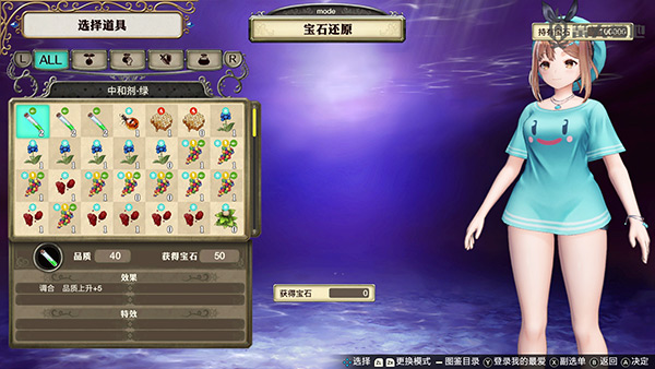 宝石还原就是分解系统,可对任何采集出来的素材和调合成品进行分解,分解所得到的宝石会随着道具的等级而有变化,但不受道具品质的影响。由于本作的宝石会经常使用在各个炼金的途径上,因此建议平时可以多刷一刷宝石。