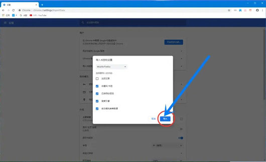 4、打开导入书签选项