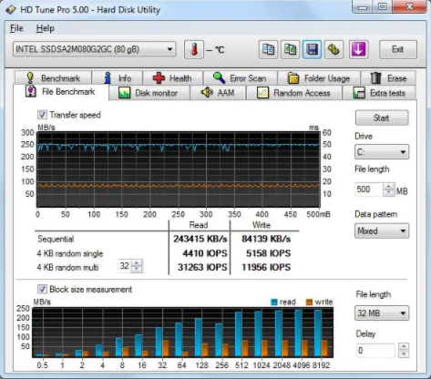 查看硬盘对于不随机文件存取所需时间及其速度。