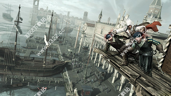 上都有一定的提高。先说攀爬,类似于跑酷的飞檐走壁在游戏中占极大的比重。想要发动鹰眼则必须攀爬到一些高层建筑上,这也是游戏的乐趣之一。站在高处俯看城镇,有种豁然开朗的感觉。借助攀爬和各种技巧接近敌人并将其暗杀成为游戏的精髓之一,前作中的融入教徒掩护自己的设定本作则可以随便融入人群或者去雇佣人群(J女和保镖等)。