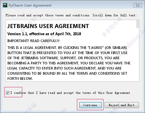 7、勾选,点击contunue继续;