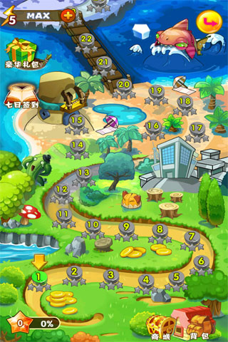 1、多种不同的关卡变化模式设计,就算是相同的关卡重新开始也会呈现出不同的布局和水果数量,提高了难度。