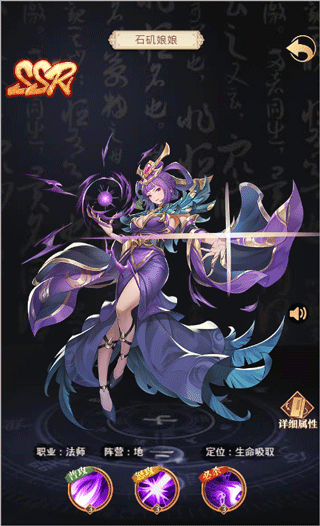 石矶娘娘:范围输出型法师,依靠技能自带吸血和施加中毒效果,配合上回血辅助和有一定坦度的前排,可以承担阵容中法坦的位置,中毒效果不断的叠加可以造成很可观的输出,同时强大的吸血和不错的坦度能让她能站的住脚,前期配合回血会十分无赖;