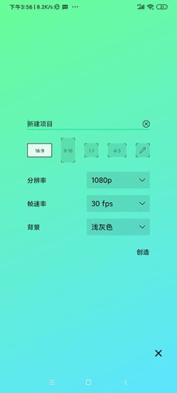 3、可以设置项目名称、宽高比例、分辨率、帧速率、背景颜色;