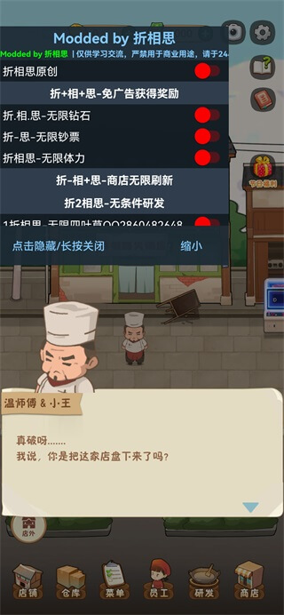 幸福路上的火锅店内置作弊菜单版是一款引人入胜的模拟经营养成类游戏,带您踏上一段充满幸福的火锅经营之旅。本站这里为大家提供的是幸福路上的火锅店内置作弊菜单版,小编实测此版本已由折相思原创破解,内置了修改器,可以实现无限钻石、无限钞票、无限体力、无限四叶草、无限培训笔记、锁定虎币的功能。在这个游戏中,您将化身为一位火锅店老板,承担经营火锅店的重责。游戏中的火锅店充满了趣味和挑战。您可以自由定制火锅店的各种计划,从装修店面到设计菜单,完全按照自己的想法打造独一无二的火锅店。您还可以开发各种火锅菜品,丰富您的菜单,满足不同顾客的口味需求。与此同时,您需要接待各种各样的顾客,包括不同的人物角色和各具特色的故事背景,倾听他们的需求和故事,提供优质的服务,让顾客们感受到火锅经营的乐趣与快乐。在《幸福路上的火锅店》中,您可以购买店面并开办连锁经营店,逐渐扩大您的火锅帝国。同时,您还可以招募和培养厨师和服务员,提升他们的技能和服务水平,确保火锅店的高效运营。您还可以装修店铺,打造独具特色的火锅店形象,吸引更多的顾客前来品尝。这款游戏不仅注重经营策略,还融入了互动元素。您可以与顾客们进行对话,倾听他们的日常生活和小故事,增进与顾客的互动和情感联系。此外,游戏中提供了丰富的图鉴内容,包括顾客、锅底、菜品、小吃、饮料以及NPC掉落等等,让您尽情收集和体验各种趣味内容。为您提供了各种道具,用于菜品收集、员工提升等经营活动,丰富您的店铺经营体验。这个游戏充满了熙熙攘攘的世界,总有一味火锅能够打动您的心。在这个冬天,让火锅和您的经营技巧共同点燃幸福之火吧!立即加入吧,成为火锅界的传奇老板!