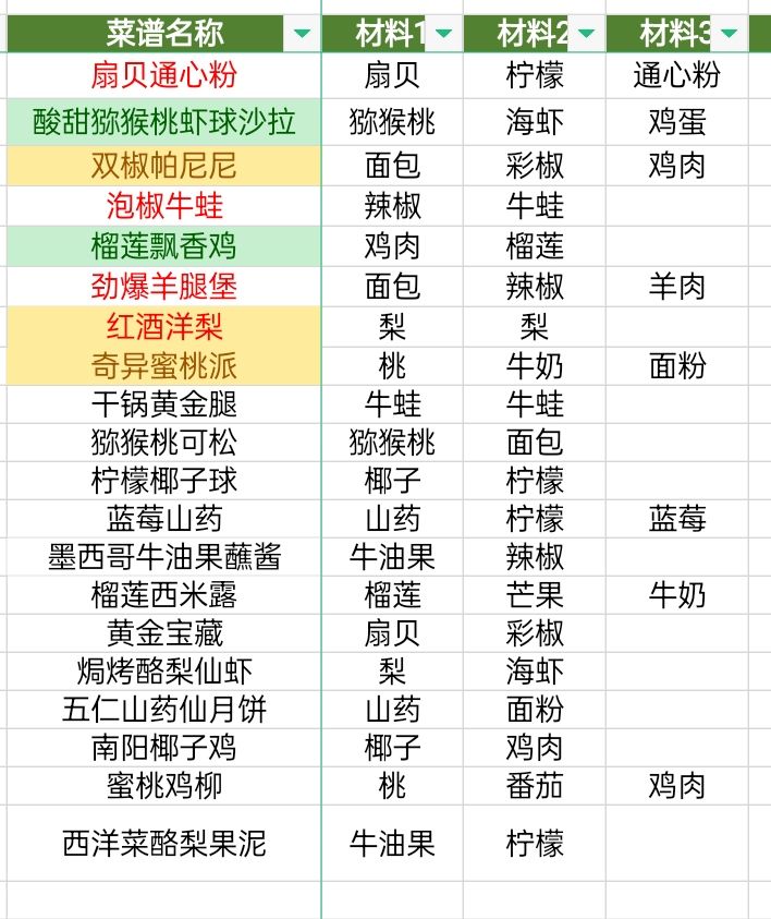 1、多种不同的料理组合,这些配方组合是不固定的,也就是游戏里玩家你可以将各种食材随意组合。