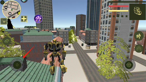 5、点击向上按钮,可以控制机甲跳跃破坏;