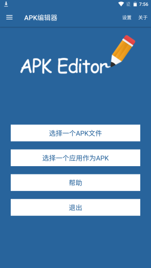 1、安装APK编辑器汉化版后,打开,点击“选择一个应用作为APK”;