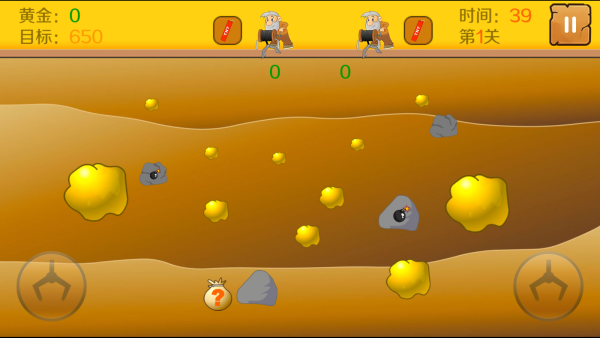4、黄金矿工双人版操作简单,在钩子摇摆的过程中,瞄准金子,点击屏幕时即会释出钩去抓取金子。