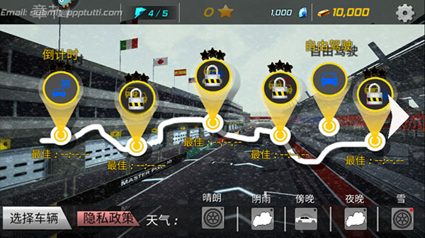 5、你可以随时选择你最喜欢的车,有许多不同的赛道可供选择;