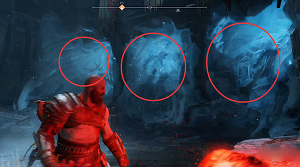 3、新的目的地-河口,回到女巫洞穴,打开奥丁密室旁的门继续探索,从这里送阿特柔斯上去。(旁边的黑色藤蔓等拿到混沌双刀后才能摧毁,到时老父亲也能爬上去了)