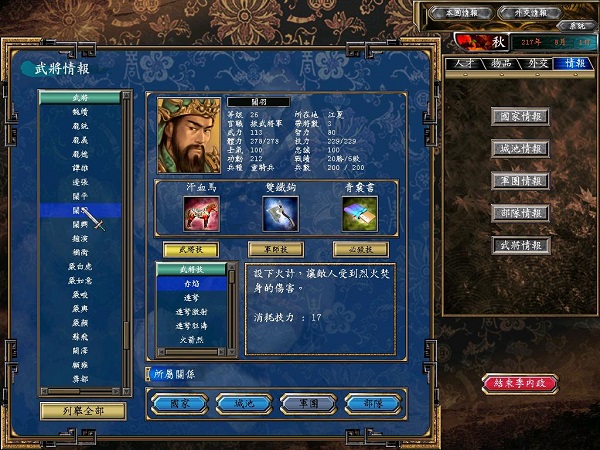 三国群英传5修改版在内政上也进行了全面的调整,让玩者能够更轻松地管理大小国政。其中最大的改变在于建物能够指派不同的部队,同时进行开发、训练、征兵、征税等内政工作。至于实施内政的效果及成功率,则和执行部队所持有的能力成正比。