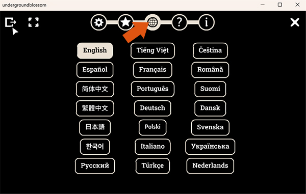 4、进入设置界面后,点击上方中间的地球按钮,接着点击简体中文即可将游戏语言改为中文