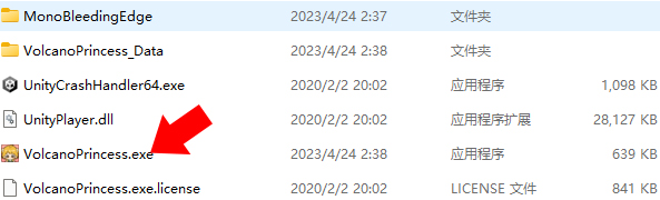 2、来到游戏主目录下,双击VolcanoPrincess.exe运行游戏