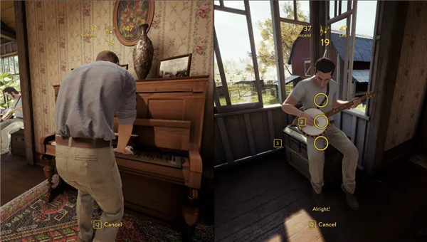 进入老夫妇小屋后,里奥弹班卓琴,文森特弹钢琴,两人分数各达到20分以上时触发合奏,随后即可获得成就。