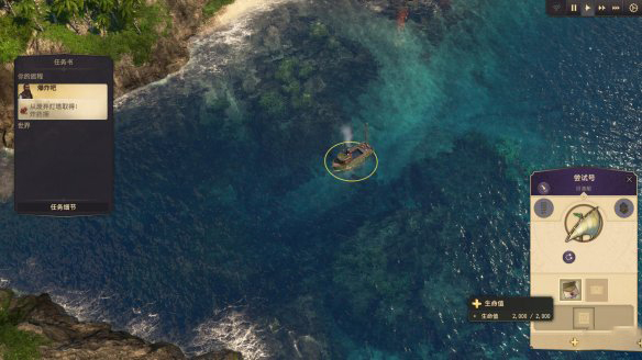 选定船舰后通过鼠标右键点击目标海域来控制其移动,右键点击的海域上会出现一个标志物船舰会自动向其进行移动。