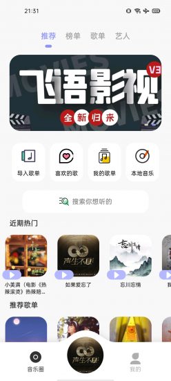 魔音音乐app官方版是一款非常受欢迎的音乐播放软件,本软件为什么受欢迎呢?这是因为本软件不仅音乐资源丰富,而且还全都免费听,所以在本软件中你能够尽情聆听你喜欢的音乐,不受没有会员的限制。本软件还提供了强大的搜索引擎,让你能够通过搜索引擎进行关键字搜索,快速找到你想要听的音乐,就拿周杰伦来讲,如果你想要听他的音乐的话,那你只需要在搜索框中输入周杰伦,然后进行搜索就能找到所有他的音乐。另外,本软件还支持导入歌单功能,让你能够直接导入QQ歌单和网易云歌单。感兴趣的朋友还在等什么?赶紧来本站下载吧!