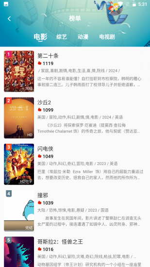 3、最新榜单,针对各种全新的影视内容等,智能优质推荐高分大片,更新最新影视排行;
