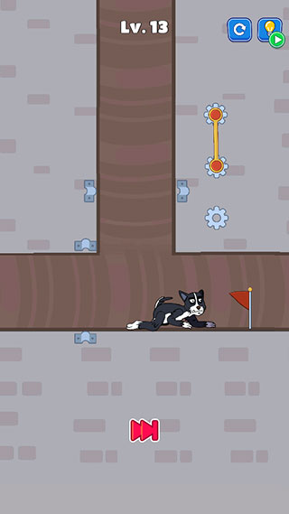 1、下载后打开进入游戏,我们以13关为例,首先先把这个拉杆往上移动;
