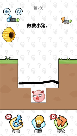 老铁救救我官方版是一款特别有趣好玩的益智闯关小游戏,里面是一个接着一个的关卡等你来挑战,它的玩法和之前那火热的救救狗狗游戏玩法相似,玩起来让人特别上头,有些关卡需要一定的智慧才能过关哦!游戏的整体画风清新明了,有着鲜明的色彩搭配,玩法操作也简单,是老少皆宜的小游戏,里面有超多经过了精心设计的各种关卡,每个关卡的难度不是特别大,但也不是很简单,是循序渐进的,玩家的任务就是拯救里面的猪头,你需要通过画线的方式阻拦猪头受到蜜蜂的攻击,只要蜜蜂碰不到狗狗,就能获得胜利!老铁救救我正版有些关卡内即使玩家给猪头画了防护线并没有什么用,这时候就需要玩家运用智慧来解决问题,思考出最佳的解决方案才行,如果实在不行还可以看提示哦,非常令人上头的游戏,感兴趣的小伙伴快来下载玩玩看吧!