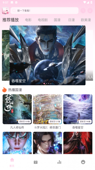 4、首页基于用户喜好推送热门与小众佳作;支持按地区(日漫/国漫/美漫)、年份、评分、状态(连载/完结) 精准筛选。
