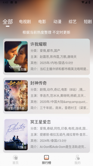 2、智能推荐:利用大数据和人工智能技术,软件会根据用户的观看历史和偏好,推荐可能感兴趣的影视作品,提升观看体验。