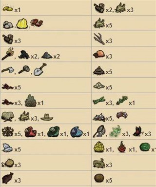 物资:草、树枝、燧石、石头、椰树、木箱、贝壳、矿石、沙堆、猪人、大嘴鸟、虎鲨巢穴、蜜蜂等