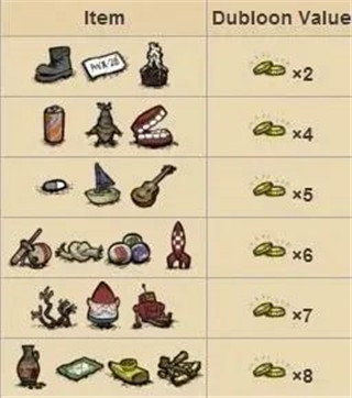 以下是交换列表(上面的是玩具类型、下面的是料理类型)