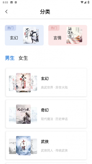 不仅有丰富的书籍分类专区,还有阅读模式、自动翻页、添加书签等功能,堪称看书小助手。