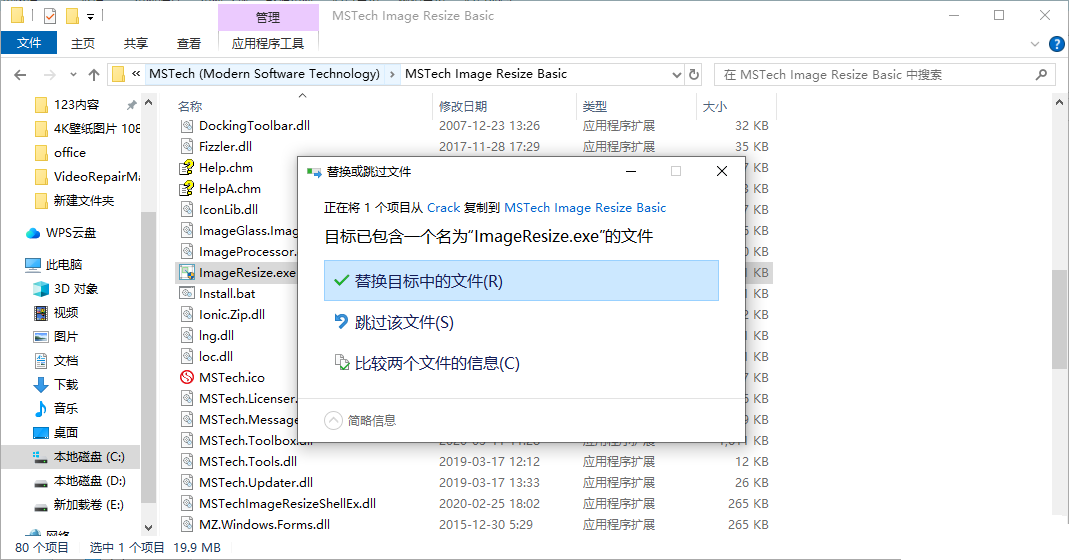 2、将补丁ImageResize.exe复制到软件的安装地址替换主程序