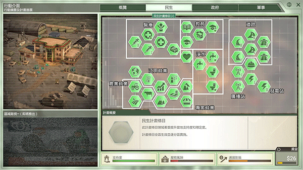 公关机构,游戏进行到一半时经常出现我方公关宣传落于下风,会掉支持度。