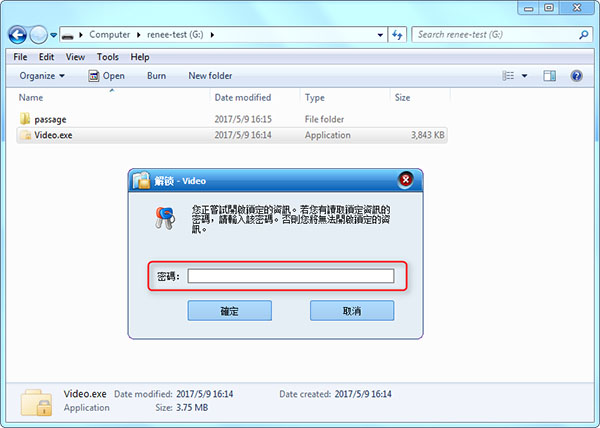 如需查看资料夹的内容,请双击该exe档案,在弹出的视窗内键入您设定的密码即可。