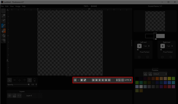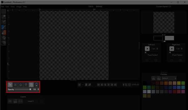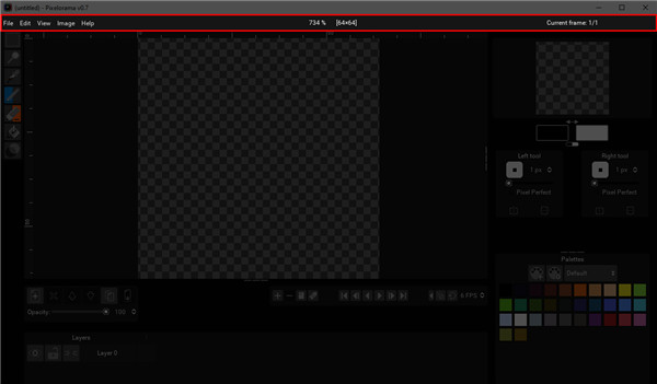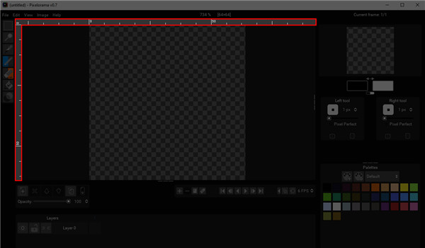 画布位于视图的中间,是您在其上创建艺术品的“图纸”。默认画布是透明的64x64像素。