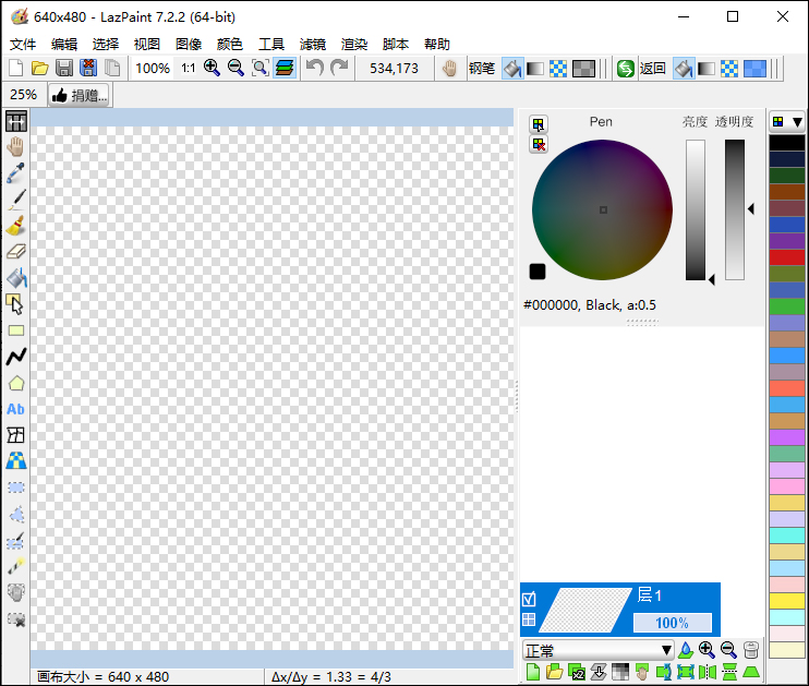 lazpaint官方版是一款非常专业的图像编辑器,该软件拥有调节笔刷、调节文字、带有色轮、海量滤镜、颜色窗口等等多种功能,可以轻松处理各种图像方面的问题。此外,用户可以一键给图片添加上文字,同时,文字颜色、大小等都是可以进行自定义调整的,满足不同人群的需求。并且,用户还能按照自己的需求进行裁剪,这样就可以让用户裁剪出合适的尺寸。同时,带有色轮,可以让你快速找到你需要的颜色。不仅如此,lazpaint电脑版还内置了种模糊、锐化、风格化等等多种滤镜功能,用户可以一键进行应用哦,十分方便。除此之外,还有撤回功能,用户进行编辑的时候系统会自动保存编辑的内容,方便用户随时进行撤回哦。觉得这款软件不错的朋友还在等什么,快来下载体验吧!