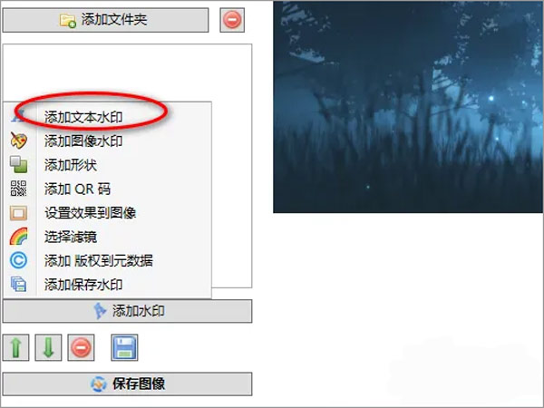 4、弹出菜单,选择添加文本水印;