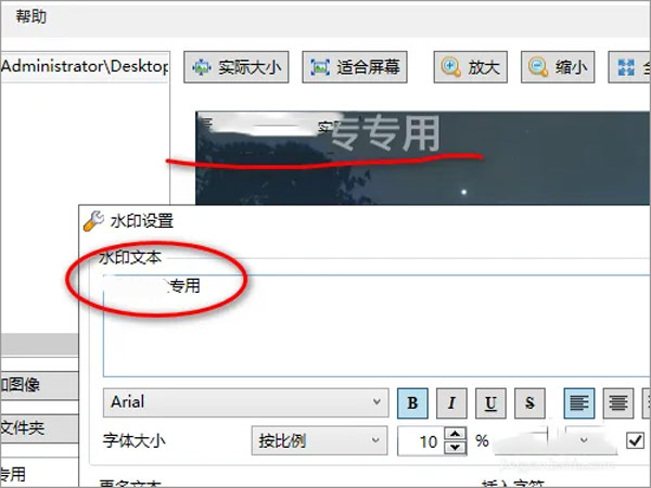 1、在实际图像上,查看全尺寸的预览,©和®的特殊字符,如添加水印。