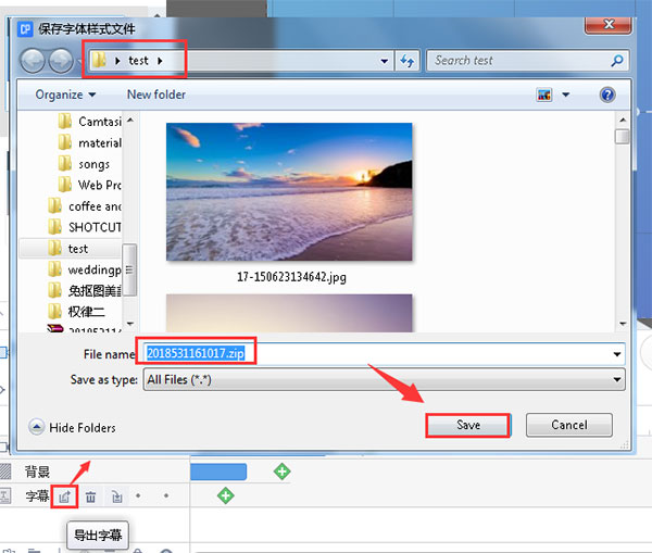 导出字幕——选择字幕文件——保存