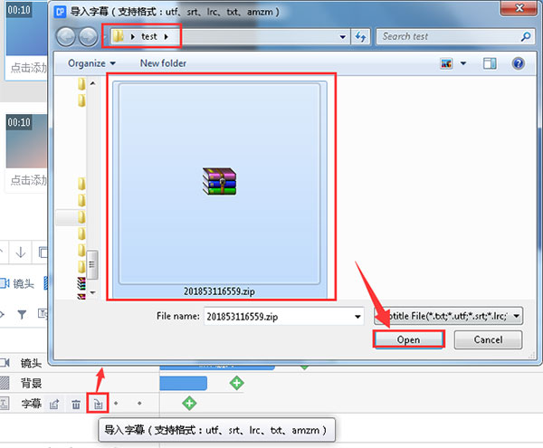 导入字幕——选择一个字幕文件——打开