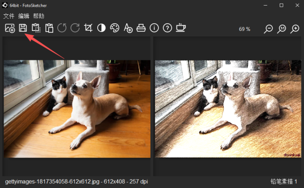 1、支持转换为彩色的铅笔素描。转换后的图片可以.jpg格式保存。