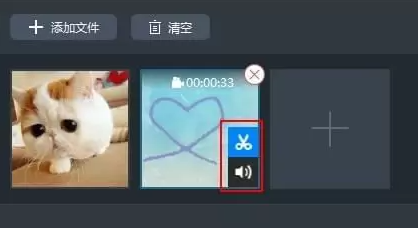 温馨提示: 导入的视频素材现在也支持简单剪辑。点击剪刀图标,可对素材进行裁剪;点击扬声器图标,可取消素材自带声音。